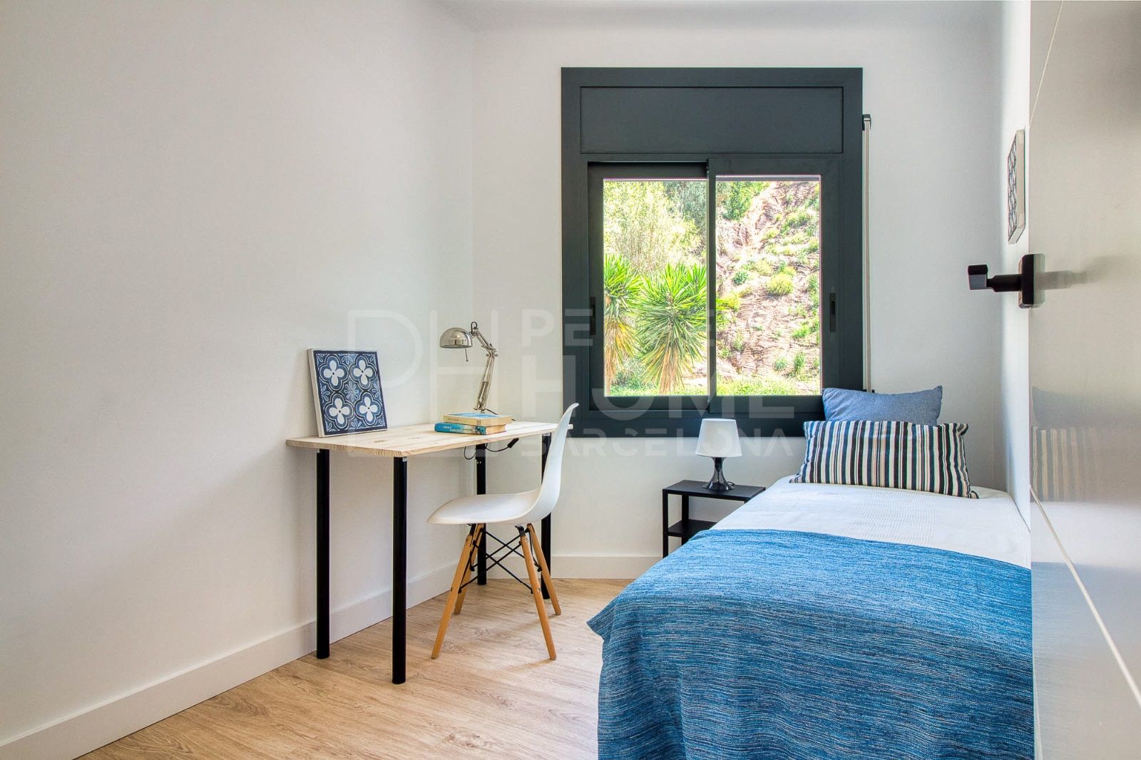 Todo ello en una gran localización: a sólo 6 minutos a pie de la estación de tren (Renfe R1/R4), y muy cerca del Club Natación Molins de Rei, el parque de la Mariona y con acceso directo al pulmón verde del parque de Collserola. Fácil conexión con Barcelona mediante transporte público o en coche (20 minutos).