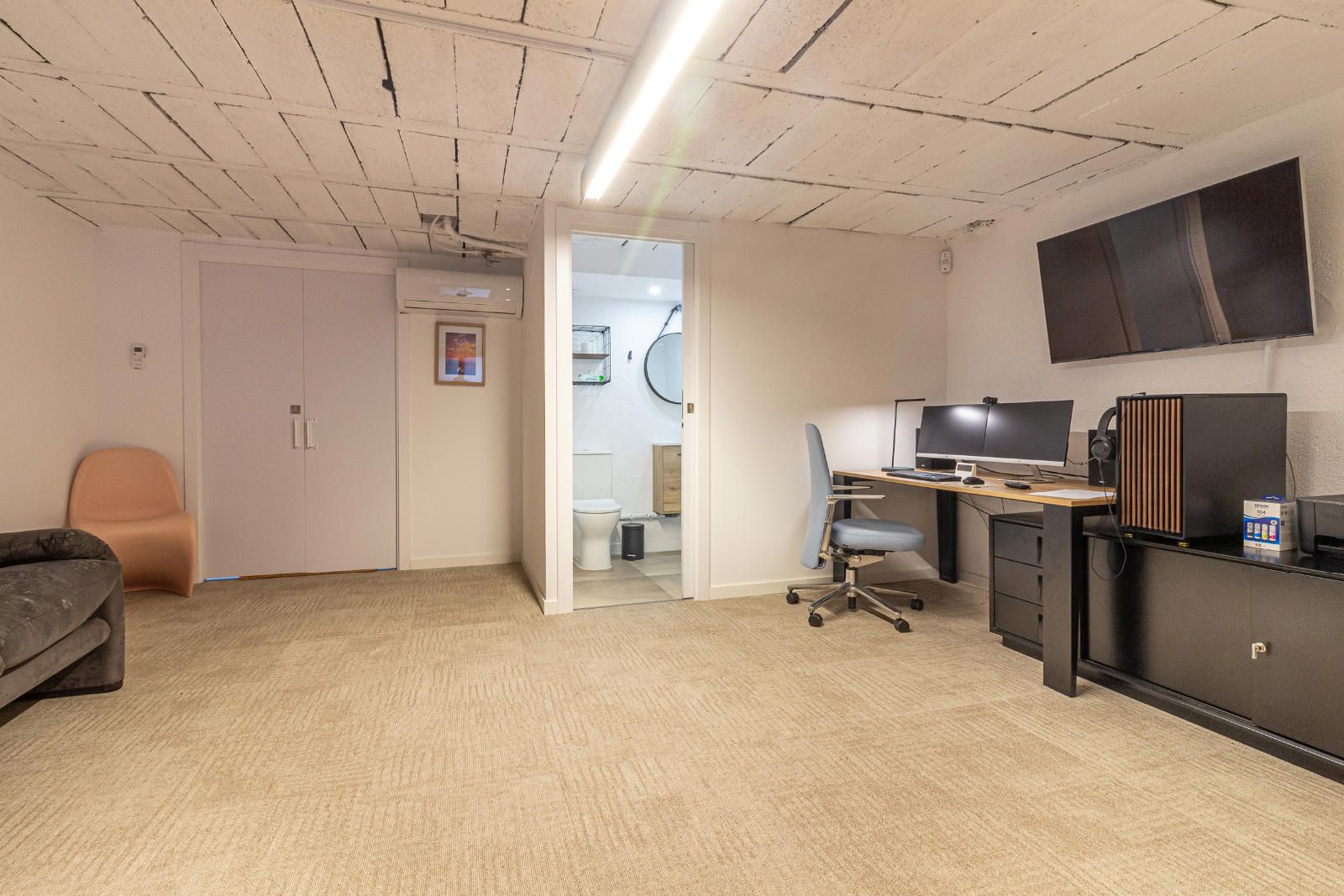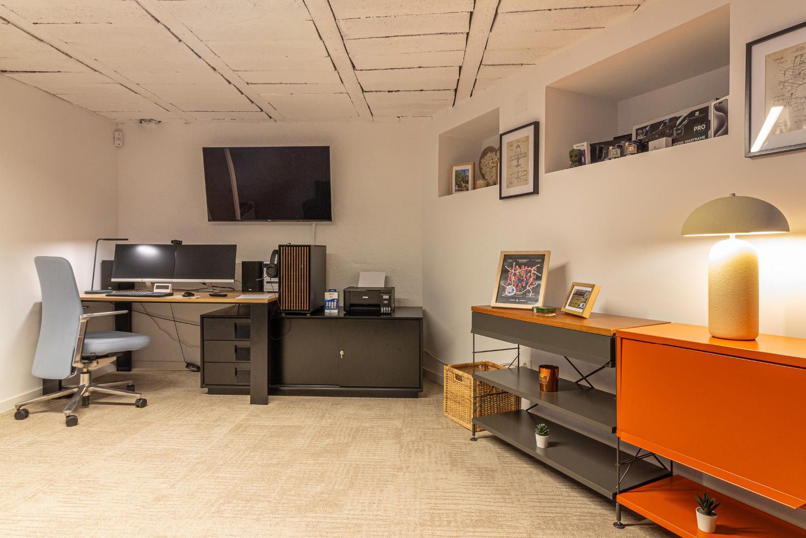 Quieres un gran espacio para tus hobbies, para el taller de pintura o de bricolaje que siempre has querido tener, para tus bicicletas o motos, para tocar tus instrumentos sin molestar a nadie, para montarte un despacho, un estudio de grabación, un gimnasio o una sala de cine en casa…. ¡Para lo que tú quieras tienes un enorme espacio polivalente en la planta baja de esta casa! Puedes dedicar una parte de ese espacio para aparcamiento, y aún te sobrará espacio para todo lo que tú quieras. Una zona que puede ser el "apartamento" independiente de tu hijo adolescente, ya que también tiene aseo, calefacción y aire acondicionado.